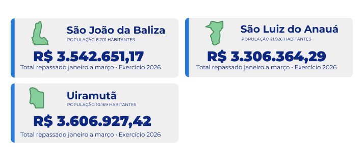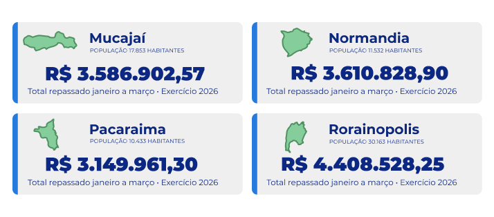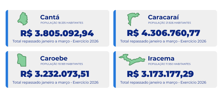 Valores repassados aos municípios e aos poderes em 2026