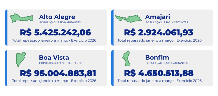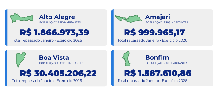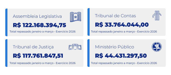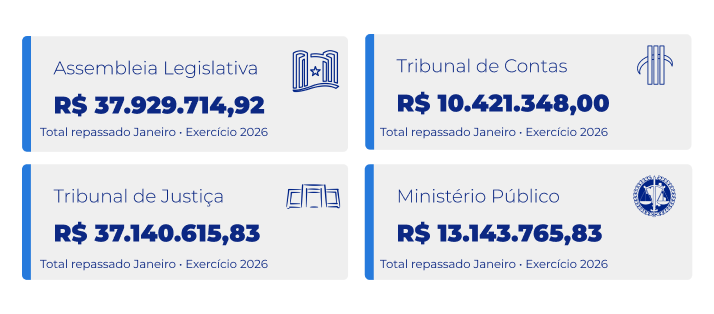Valores repassados aos municípios e aos poderes em 2026